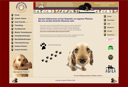 Neuartige Geschäftsidee mit einschlagendem Erfolg. Die, aus vielen Fernsehreportagen bekannte Agentur für den Vierbeiner, erteilte uns den Auftrag zur Erstellung einer "Kopie" ihrer bestehenden Flashsite in HTML.