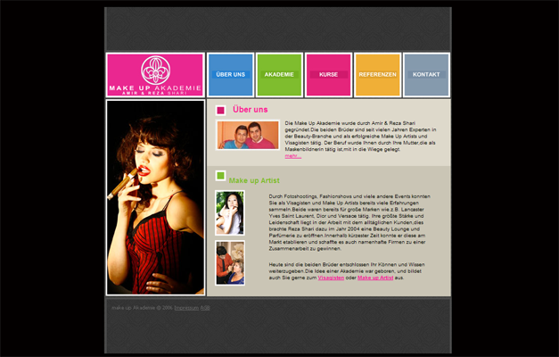 Der Starvisagist Reza Shari, von der Make up Akademie in Mannheim, beauftragte uns mit der Umsetzung der bestehenden Seite von Flash zu Html.